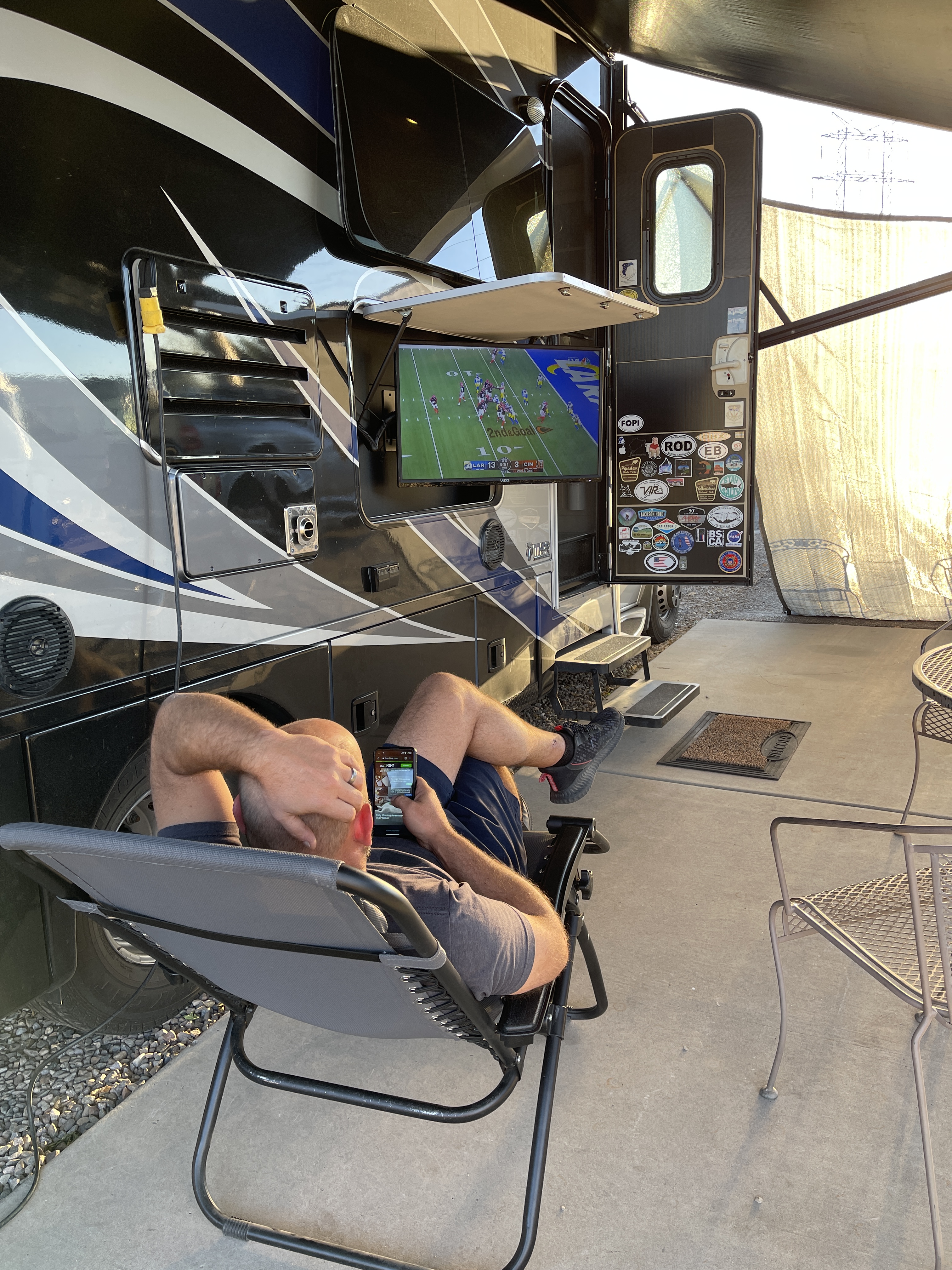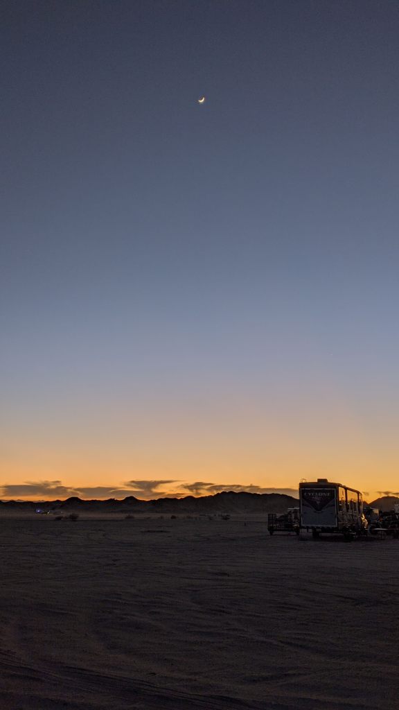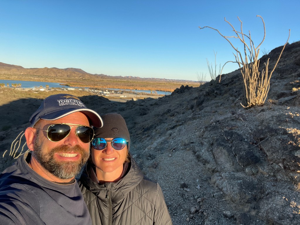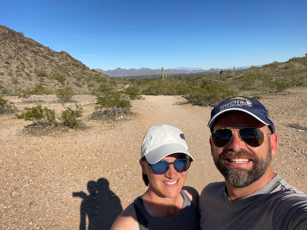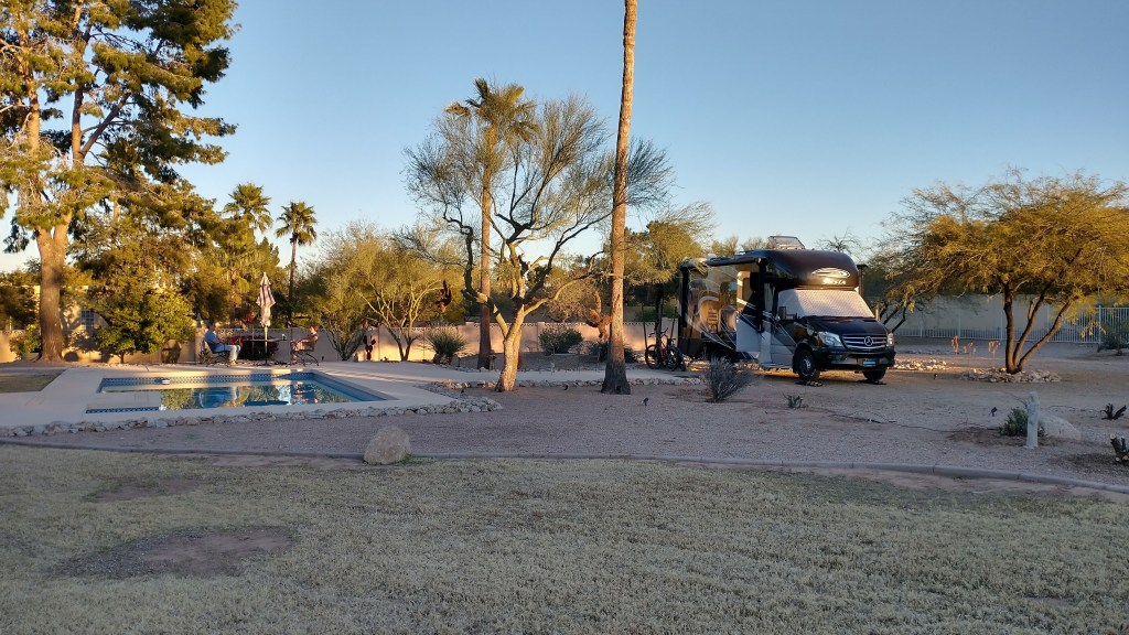 We then went back to Phoenix for round two of backyard “mooch-docking” with our friends. Fixit projects, food and friends, hiking and biking. Schedules aligned with our regular Pack members from NC who were visiting family in Scottsdale, so we all met at a great German place. I got full again. Seems to happen occasionally during these travels. We have, on the contrary, discovered “Salad and Go”, a really great drive through salad operation with locations in AZ and TX. I did a predawn hike up a nearby peak to watch the sunrise. It was not a romantic shared moment with V, as she would not at all enjoyed the creepiness of the required headlamp and the goat path of a rocky trail.