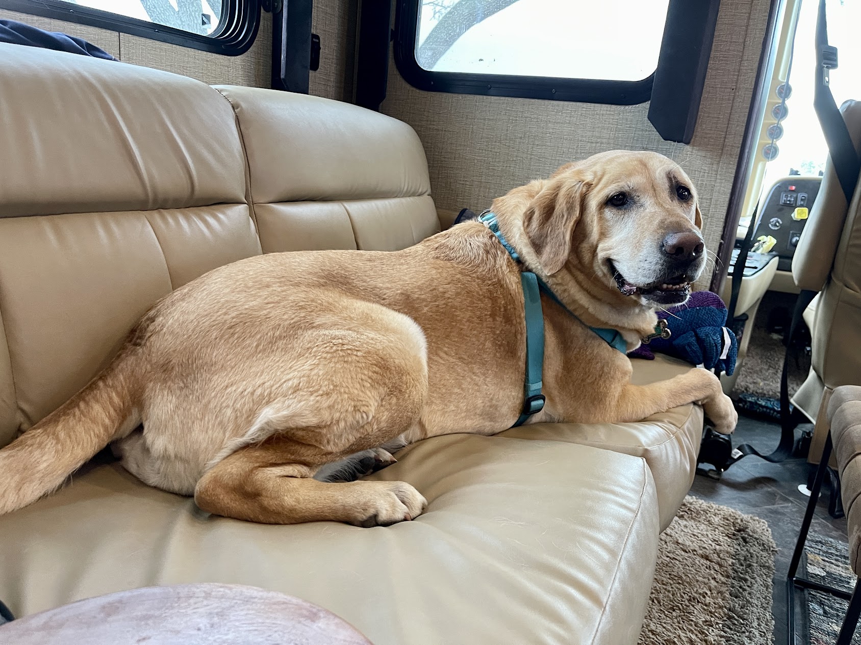 We’ve been in Port Lavaca, Texas for the last few days with pack members (M’s mom, Jean, her husband Bill and their dogs, Molly & Maggie), hunkered down. The weather has been less than ideal – dreary, cold, and extremely windy, just like winter at home. While it’s familiar and we are well equipped, we had hoped for warmer temperatures.