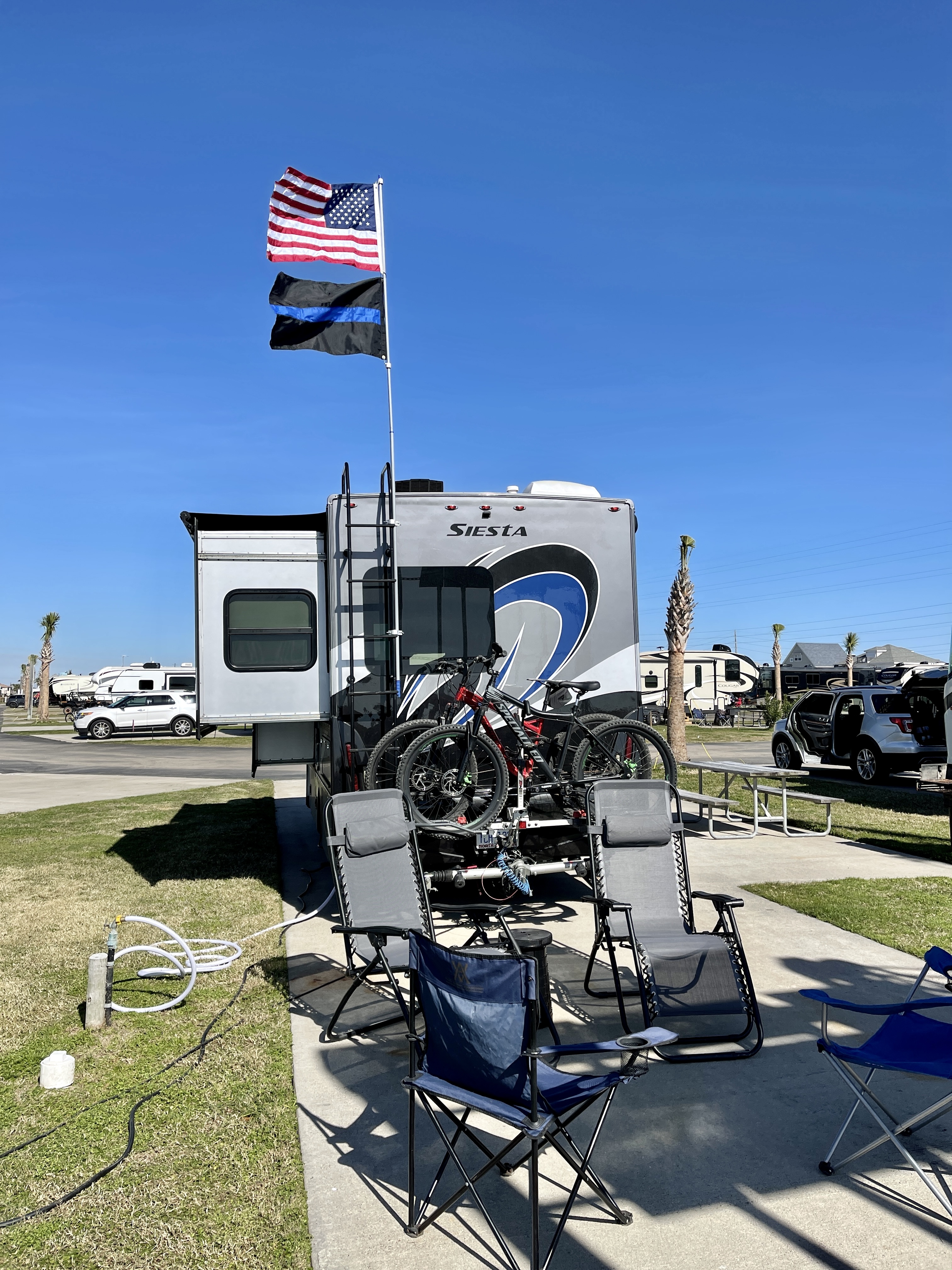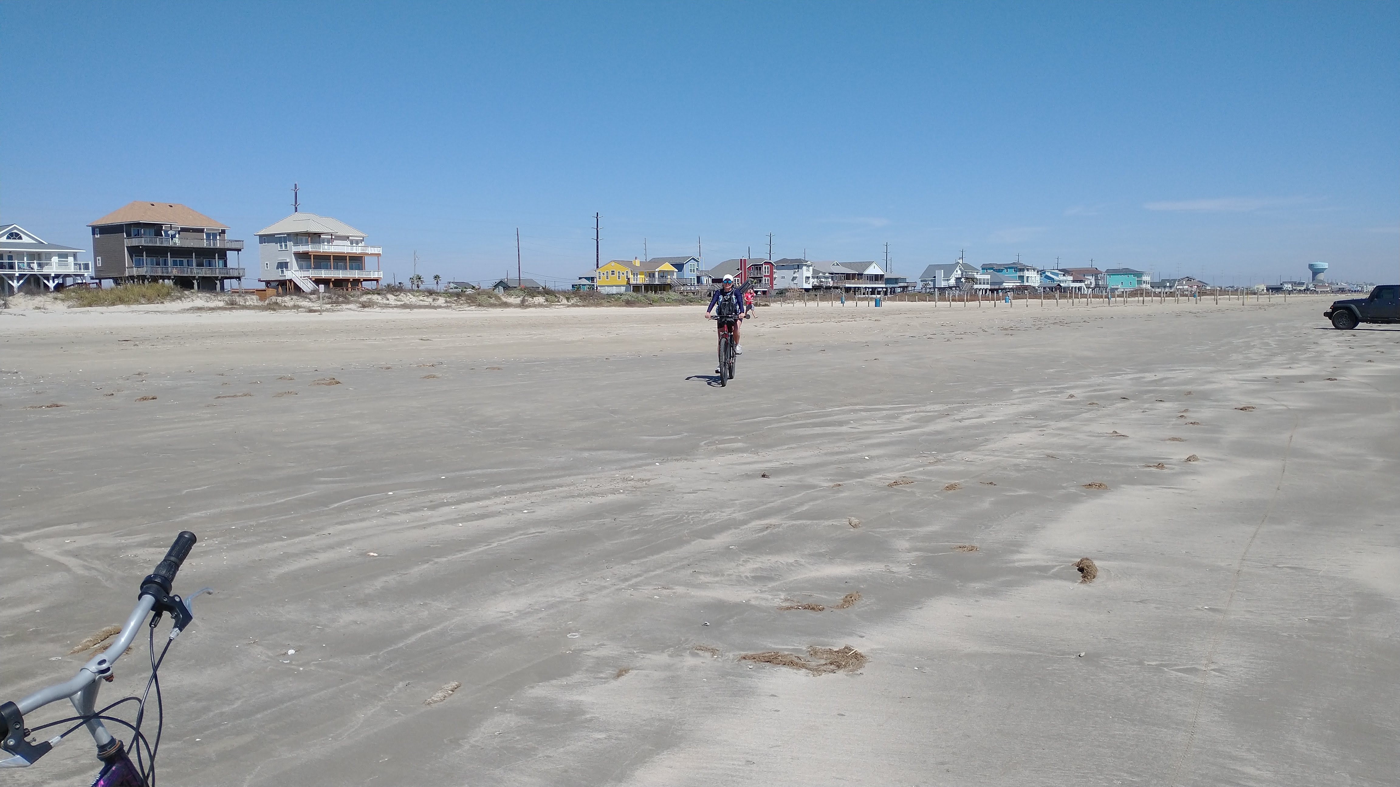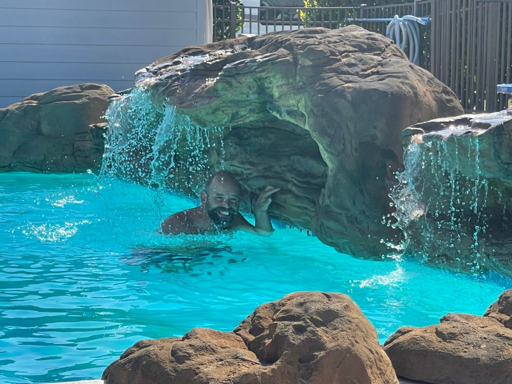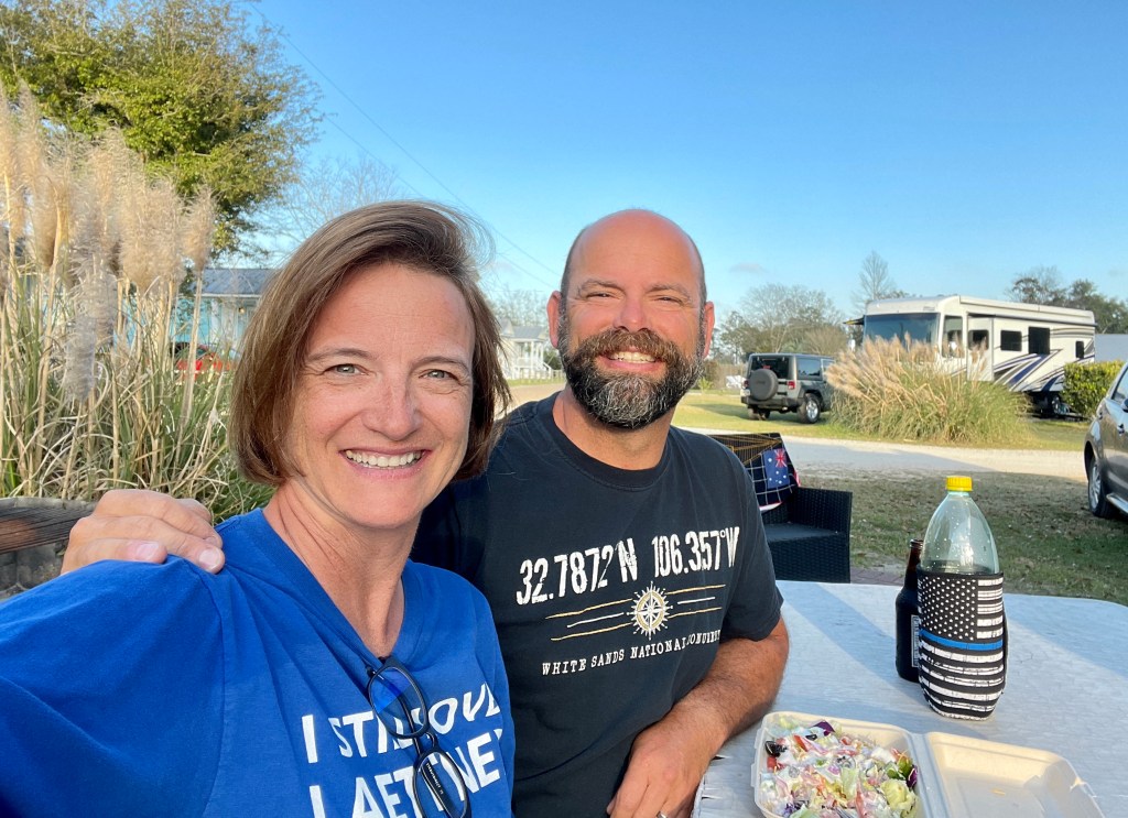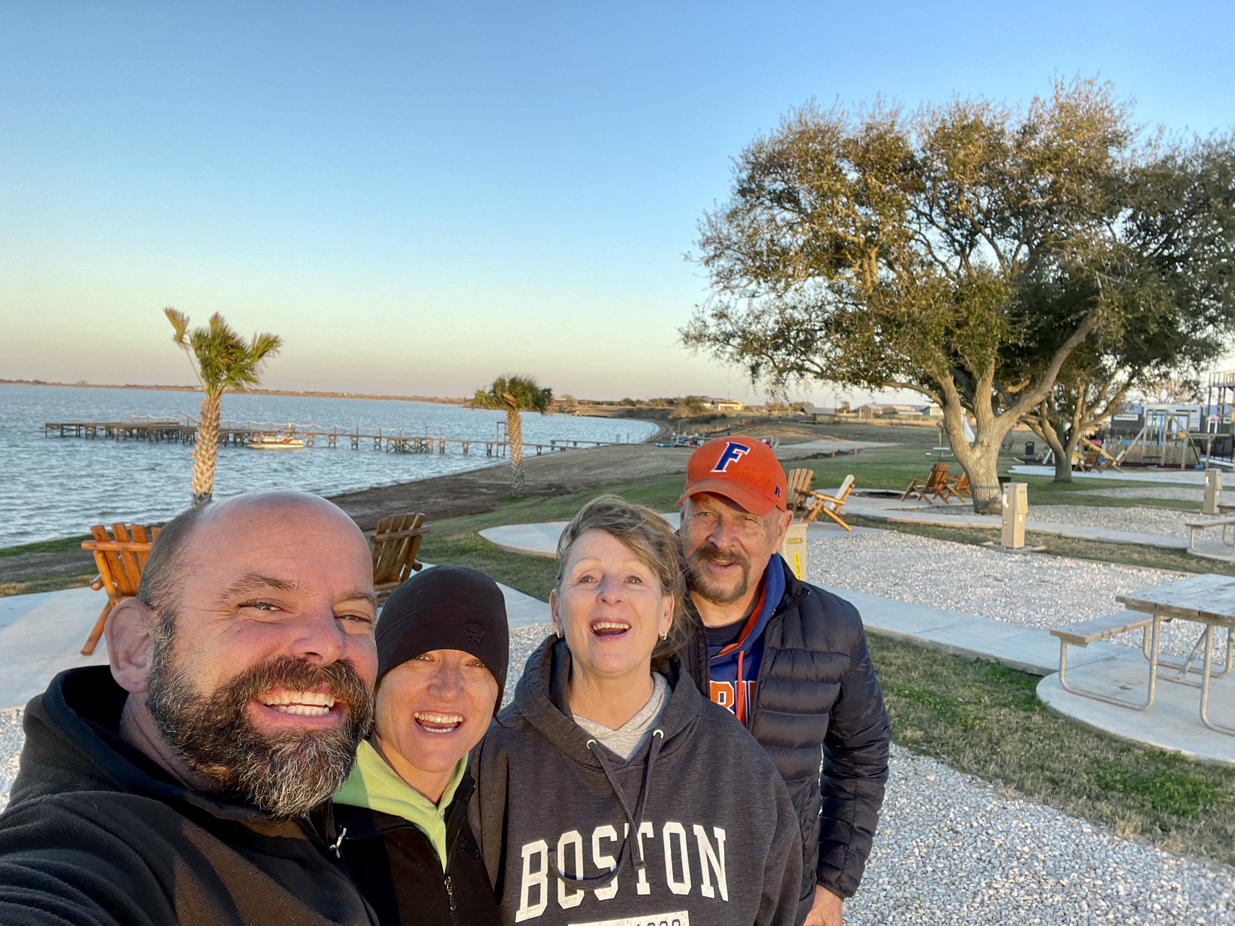 Last travel update was from Matagorda, TX, where we hunkered down inside over some rainy days. However, we did manage in between the down days to do three Walmart trips, a couple of restaurants, and a pool/hot tub day. It was good to catch up with our “originally supposed to go with” pack members. We left there and had a really great few days on Galveston Island. A really nice campground pool and a great stretch of beach. Figuring this would be some of our last beach weather, we soaked it up.