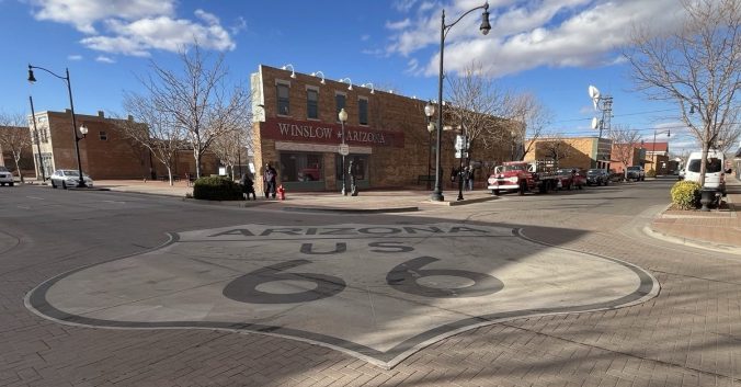 Well I’m a-standin’ on the corner in Winslow, Arizona